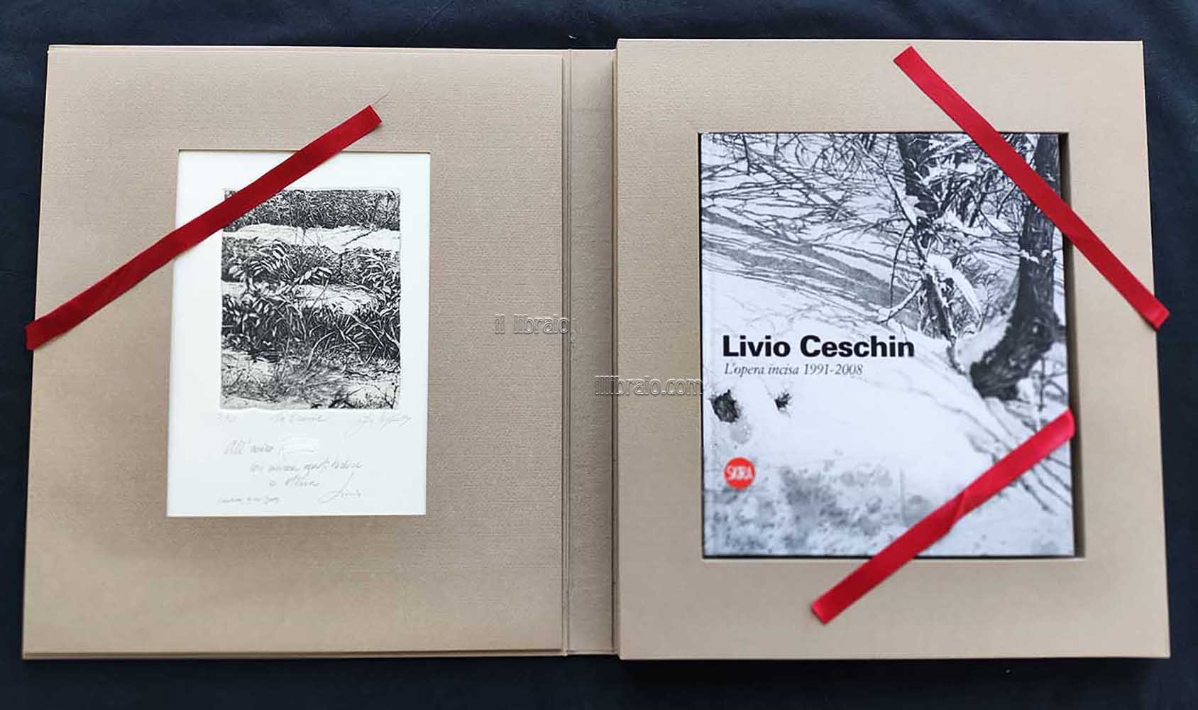 in 4°; pp. 208 + 1 tav. (ill. in bn.); leg. con astuccio in cartoncino pesante con chiusura a lacci; coll. Albertina Publication, # 48. Tiratura di 50 esemplari numerati (ns. 3) *esemplare con dedica dell'autore. Catalogo generale dell'opera incisa dell'artista veneto. Esemplare con un autografo di Alessandro Piras, arricchito da un disegno originale a penna con dedica di Ceschin e un'incisione numerata (ns. 3/50) e firmata dall'artista