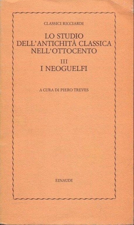 Lo Studio Dell'antichita Classica Nell'ottocento. Vol. 3: I Neoguelfi. | Livres anciens et modernes | Piero Treves