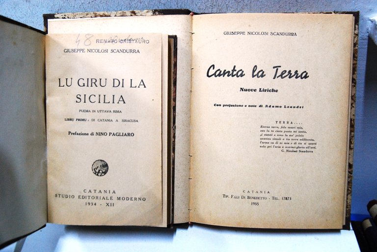 lu giru di la sicilia 1934 e canta la terra 1955 - CARTONATI perfette condizioni