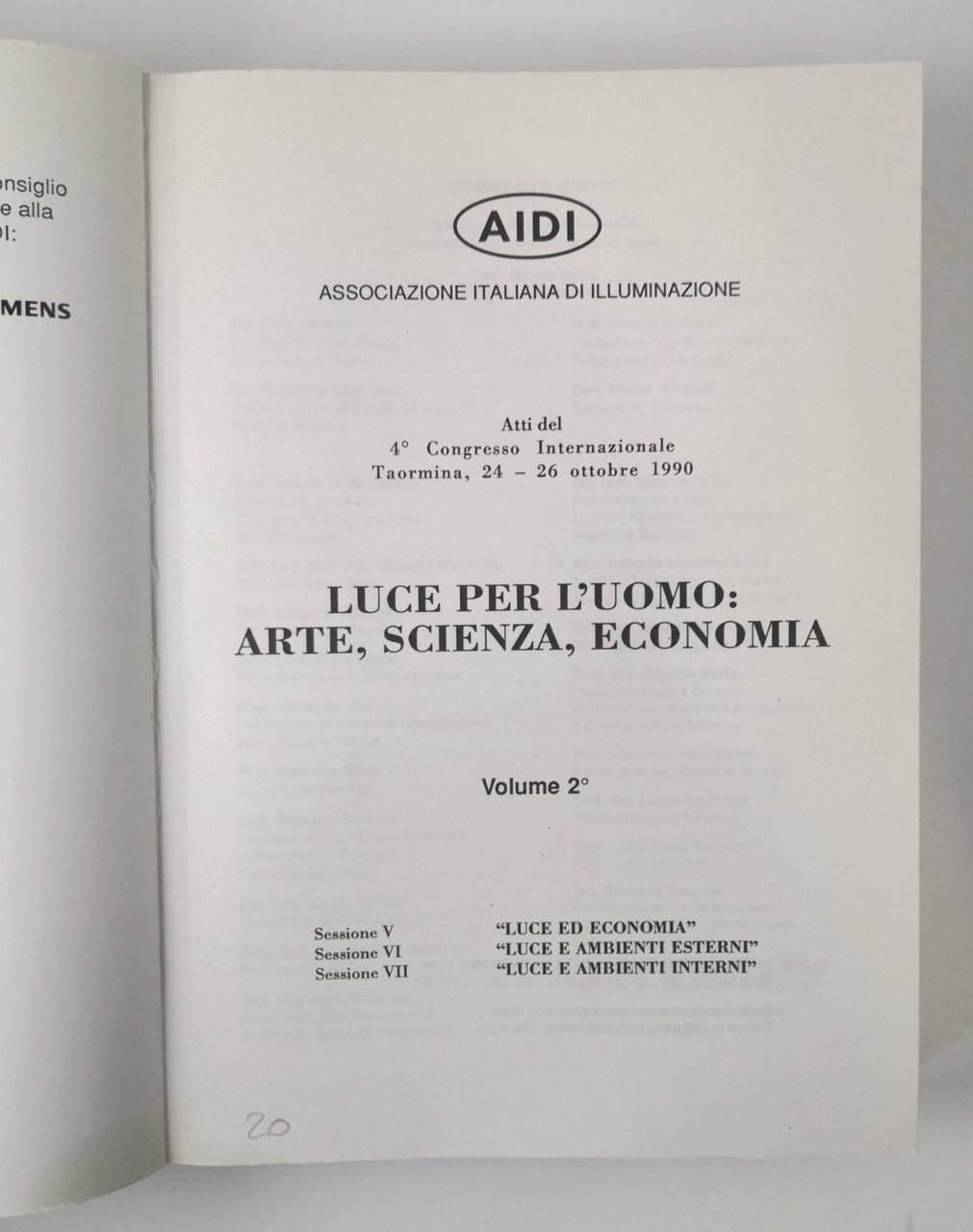 LUCE PER L'UOMO: ARTE, SCIENZA, ECONOMIA. Atti del 4 Congresso Internazionale, Volume 2. Taormina, 24-26 ottobre 1990.