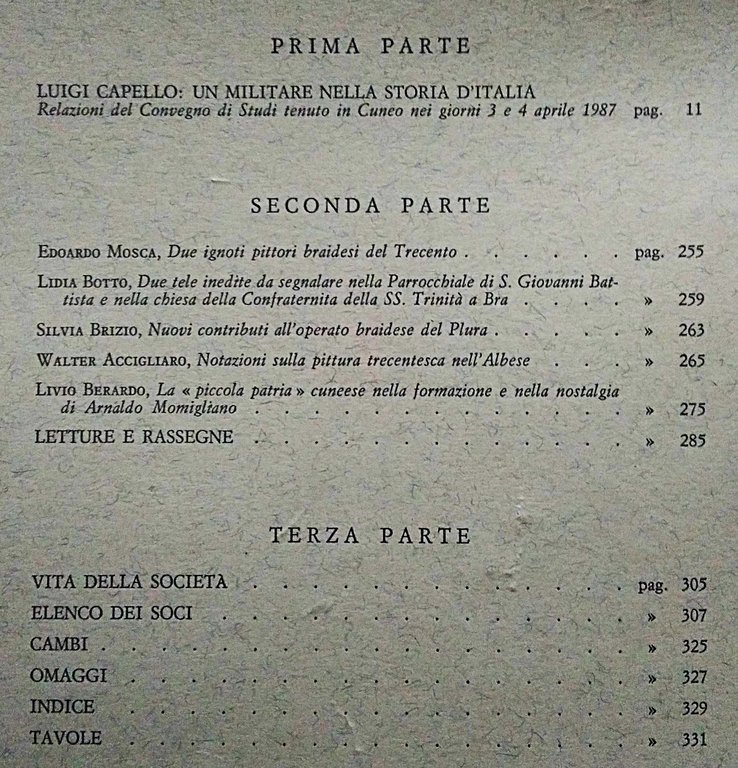 LUIGI CAPELLO: UN MILITARE NELLA STORIA D'ITALIA. Relazioni del Convegno...Cuneo, 3 e 4 aprile 1987. IN - Bollettino della Società per gli Studi Storici, Archeologici ed Artistici della Provincia di Cuneo, N. 97, 2° semestre 1987.