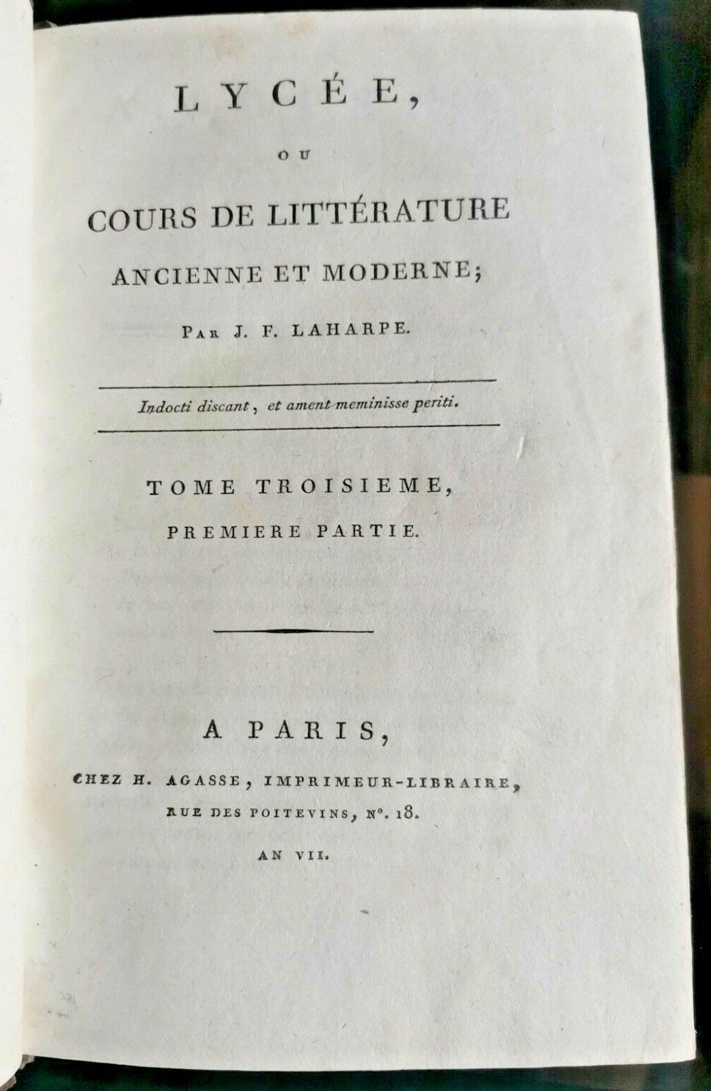 LYCEE OU COURS DE LITTERATURE ANCIENNE ET MODERNE tomo 3 di La Harpe 1799 libro