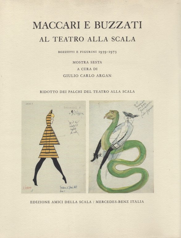 Maccari e Buzzati al teatro alla Scala. Bozzetti e figurini 1959-1973. Mostrra sesta a cura di Giulio Carlo Argan. Ridotto dei palchi del Teatro alla Scala