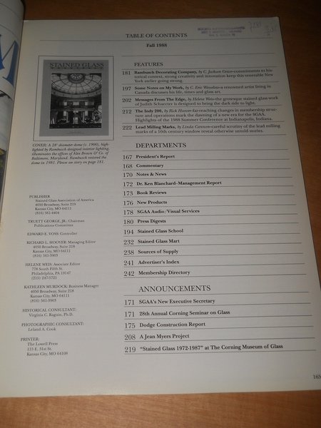 magazine STAINED GLASS vol. 83 n. 3 fall 1988