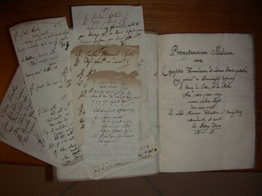 MANOSCRITTO di medicina recante il titolo “Promptuarium Medicum / sive / Expositio Formularum ad medicam Praxim spectantium, / qua primu in Bononiensis Nosocomiis / S. Maria de Vita, et de Morte / Ann. 1757 1758 1759 / summo labore collegit / dein anno 1760 / In celebri Nosocomio Florentino S. Maria Nova / emendavit et auxit / Io. Petrus Fiorio / M. D.”.