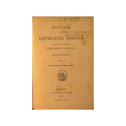 Manuale della letteratura italiana - Volume I