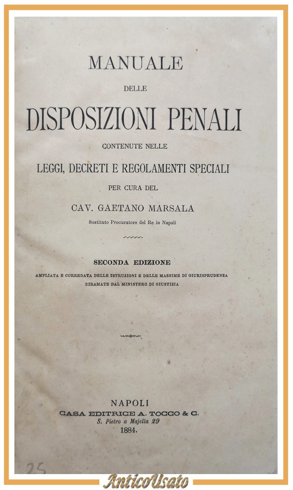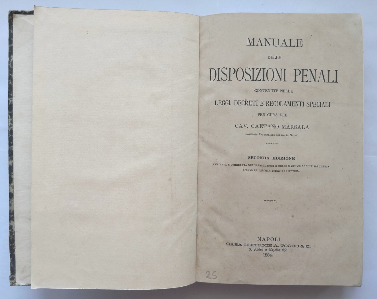 MANUALE DELLE DISPOSIZIONI PENALI di Gaetano Marsala 1884 Tocco libro leggi