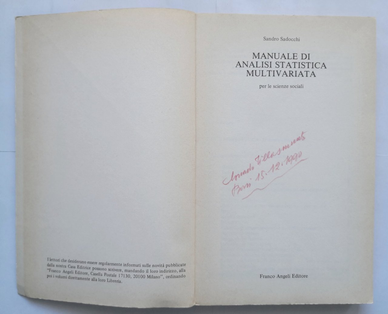 MANUALE DI ANALISI STATISTICA MULTIVARIATA Sandro Sadocchi 1981 Angeli Libro