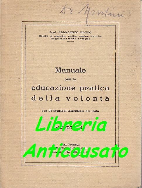 MANUALE PER L’EDUCAZIONE PRATICA DELLA VOLONTÀ di Francesco Bruno 1935 libro