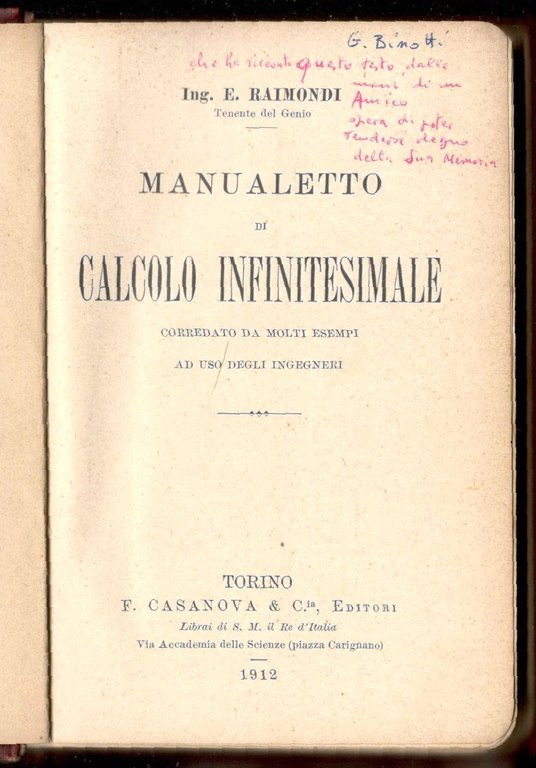 Manualetto di calcolo infinitesimale corredato da molti esempi ad uso degli ingegneri