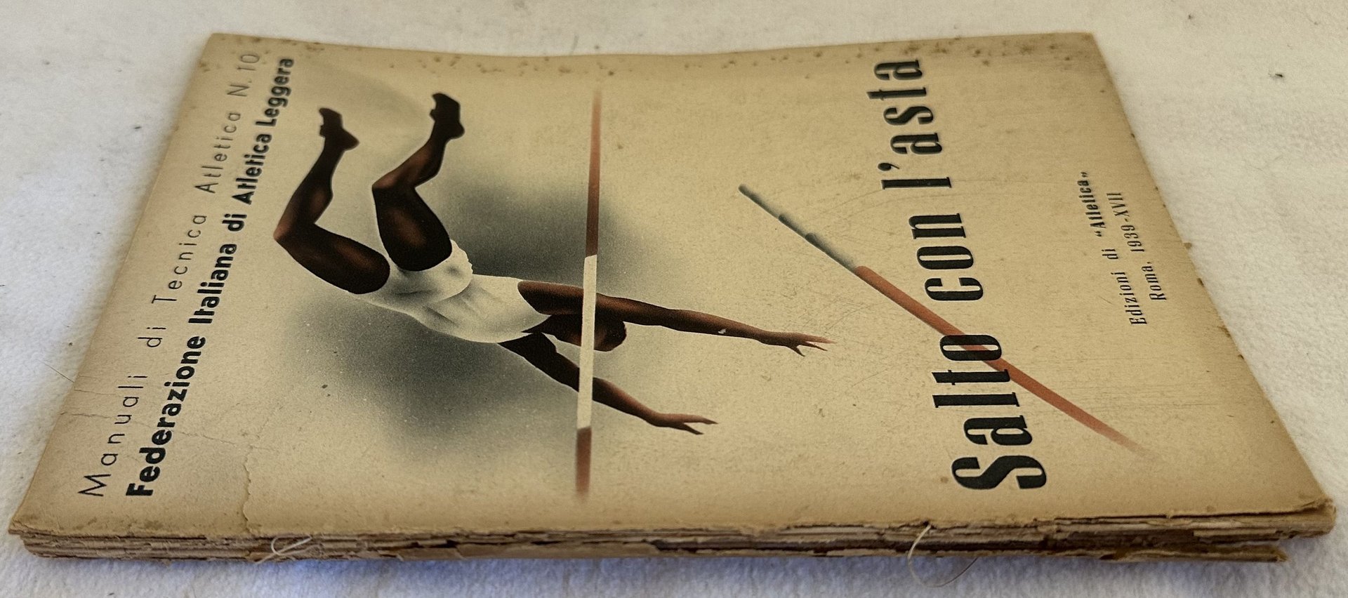 Edizione del 1939 della collana "Manuali di Tecnica atletica" di questo manuale sul salto con l'asta<BR> All'interno tecniche e trucchi. Numerose foto in bianco e nero nel testo. Alla fine cronologia del primato mondiale, del primato italiano ed elenco dei campioni d'Italia. In discrete condizioni. Copertina editoriale in discrete condizioni generali con lievi usure ai margini e dorso. Legatura in mediocri condizioni. All'interno le pagine si presentano in buone condizioni con fioriture. In 8. cm 19,5x13. Pp. 78+(2)Edition of 1939 of this book of the series "Manuali di Tecnica atletica" about pole vault. inside techniques and suggestions. Different black and photoes in the text. At the end chronology of worls record, italian record and list of italian champions. In fair conditions. Editorial cover in fair general conditions lightly worn in the extremities. little wormings. Binding in poor conditions. Inside pages are in good conditions with foxing. In 8. cm 19,5x13. Pp. 78+(2)