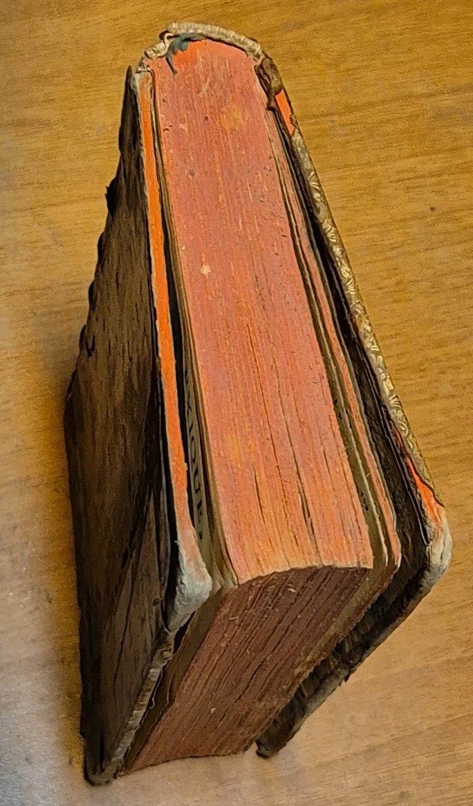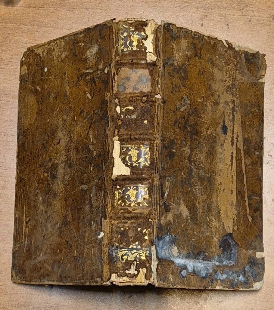 (IV), 413 pagine Copertina coeva in tutta pelle (vitello) con tagli color rosso e dorso a 5 nervi, belle guardie marmorizzate. Dimensioni: 11 x 17 cm. Stato di conservazione: buono (fioriture, mancanze ai piatti e al dorso)
