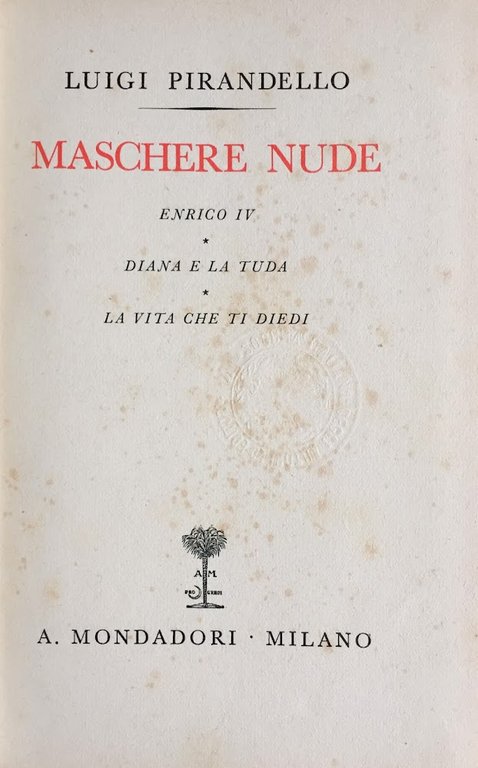 Contiene: Enrico IV, Diana e la Tuda, La vita che ti diedi. Tutto il teatro di Pirandello, 2. In Ottavi (15-23cm ) Ottimo (Fine) Ottimo