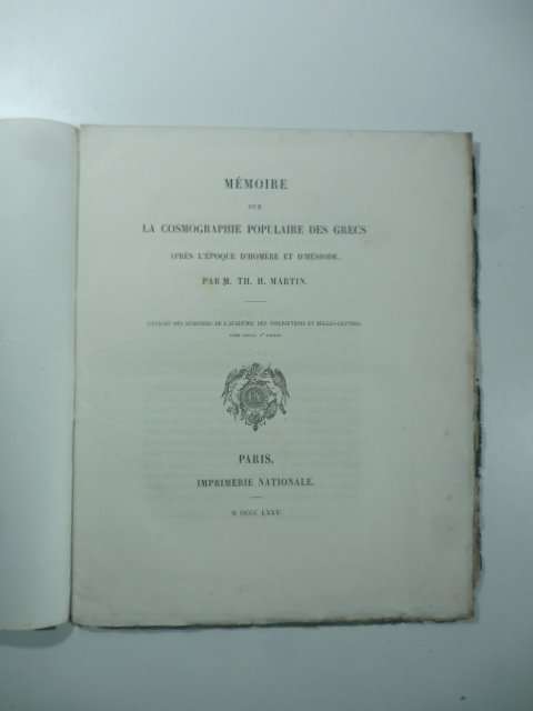 Memoire sur la Cosmographie populaire des Grecs apres l'epoque d'Homere et d'Hesiode