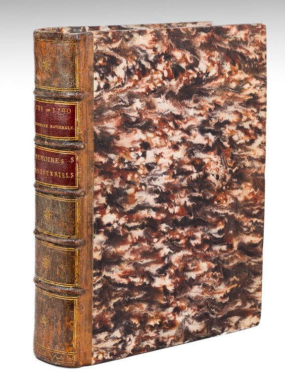 1 vol. in-4 reliure de l'époque demi-basane marron, dos à 5 nerfs orné et vernissé, [ Mémoires ministériels 1789 - 1790 : recueil de 39 Titres ] Lettre du Roi pour la Convocation des Etats-Généraux à Versailles le 27 avril 1789, et Règlement y annexé, De l'Imprimerie Royale, Paris, 1789, 24 pp. [ Suivi de : ] Etat, par ordre alphabétique, des Bailliages royaux & des Sénéchaussées royales des Pays d'Elections, qui députeront directement ou indirectement aux Etats-Généraux [ . ], A Paris, De l'Imprimerie Royale, Paris, 1789, 16 pp. [ Suivi de : ] Ordonnance à rendre par les Baillis & Sénéchaux de la première classe, ou en leur absence, par leurs Lieutenants Généraux, lorsque des Bailliages ou Sénéchaussées de la seconde classe devront concourir avec eux à la convocation pour les Etats-Généraux, s.l.n.d., 18 pp. [ Suivi de : ] Modèle de l'Assignation à donner aux Ecclésiastiques possédant bénéfices, & aux Ducs, Pairs, Marquis, Comtes, barons, Châtelains & généralement à tous les Nobles possédant fiefs A Paris, De l'Imprimerie Royale, Paris, 1789, 18 pp. [ Suivi de : ] Ouverture des Etats-Généraux, faite à Versailles le 5 Mai 1789. Discours du Roi ; Discours de M. Le Garde des Sceaux ; Rapport de M. le Directeur Général des Finances, fait par Ordre du Roi, De l'Imprimerie Royale, A Paris, 1789, 103 pp. et 5 ff. n. ch. [ Suivi de : ] Discours de M. Necker à l'Assemblée Nationale. Réponse de M. le Duc de Liancourt, Président de l'Assemblée Nationale, Chez Baudouin, Imprimeur de l'Assemblée Nationale, A Versailles, s.d., 4 pp. [ Suivi de : ] Rapport de M. Necker, Premier Ministre des Finances, lû à l'Assemblée Nationale le 27 Août 1789, De l'Imprimerie Royale, A Paris, 1789, 16 pp. [ Suivi de : ] Discours prononcé le 30 Juillet 1789 à l'Hôtel-de-Ville par M. Necker, Directeur général des Finances, De l'Imprimerie Royale, A Paris, 1789, 8 pp. [ Suivi de : ] Discours de M. le Garde des Sceaux à l'Assemblée nationale, le 7 Août 1789, De l'Imprimerie Royale, A Versailles, 1789, 6 pp. [ Suivi de : ] Discours de M. Necker, Premier Ministre des Finances à l'Assemblée Nationale, De l'Imprimerie Royale, A Paris, 1789, 7 pp. [ Suivi de : ] Lettre du Roi aux Archevêques & Evêques de son Royaume, A Versailles ce 2 septembre 1789 [ Suivi de : ] Discours de M. le Garde des Sceaux à l'Assemblée nationale, le 7 Août 1789, De l'Imprimerie Royale, A Versailles, 1789, 4 pp. [ Suivi de : ] Lettre de M. Necker, Premier Ministre des Finances, à M. le Président de l'Assemblée Nationale, Versailles, le 11 septembre 1789, De l'Imprimerie Royale, A Paris, 1789, 16 pp. [ Suivi de : ] Discours prononcé par M. Necker, premier Ministre des Finances, à l'Assemblée nationale, le 24 Septembre 1789, De l'Imprimerie Royale, A Paris, 1789, 30 pp. [ Suivi de : ] Projet de décret présentée à l'Assemblée Nationale par le premier Ministre des Finances, le 1er Octobre 1789, De l'Imprimerie Royale, A Paris, 1789, 15 pp. [ Suivi de : ] Proclamation du Roi du 9 Octobre 1789, De l'Imprimerie Royale, A Paris, 1789, 6 pp. [ Suivi de : ] Mémoire des Ministres du Roi, adressé à l'Assemblée Nationale le 24 Octobre 1789, De l'Imprimerie Royale, A Paris, 1789, 11 pp. [ Suivi de : ] Mémoire Lû par le premier Ministre des Finances, à l'Assemblée Nationale, le 14 Novembre 1789, De l'Imprimerie Royale, A Paris, 1789, 38 pp. [ Suivi de : ] Mémoire adressé par le premier Ministre des Finances, à l'Assemblée Nationale, le 17 Décembre 1789, De l'Imprimerie Royale, A Paris, 1789, 14 pp. [ Suivi de : ] Instruction publiée par Ordre du Roi, Relativement à la Contribution Patriotique, De l'Imprimerie Royale, A Paris, 1789, 21 pp. [ Suivi de : ] Mémoire adressé à M. le Président de l'Assemblée Nationale par M. le Garde des Sceaux, De l'Imprimerie Royale, A Paris, 1789, 14 pp. et 1 f. [ Suivi de : ] Mémoire du Premier Ministre des Finances, lû à l'Assemblée Nationale le 6 Mars 1790, De l'Imprimerie Royale, A Paris, 1789, 48 pp. [ Suivi de : ] Mémoire du Premier Ministre des Finances, lû à l'Assemblée Nationale le 12 Mars 1790, De l'Imprimerie Royale, A Paris, 1790, 8 pp. [ Suivi de : ] Mémoire lu à l'Assemblée Nationale par M. le premier Ministre des Finances le 29 Mai 1790, De l'Imprimerie Royale, A Paris, 1789, 24 pp. [ Suivi de : ] Lettre de M. Necker à M. le Président de l'Assemblée Nationale, le 11 juin 1790, De l'Imprimerie Royale, A Paris, 1790, 24 pp. [ Suivi de : ] Mémoire envoyé par le Premier Ministre des Finances à l'Assemblée Nationale, le 21 Juillet 1790, De l'Imprimerie Royale, A Paris, 1790, 6 pp. [ Suivi de : ] Mémoire adressé à l'Assemblée Nationale, le 25 Juillet 1790 par le premier Ministre des Finances, De l'Imprimerie Royale, A Paris, 1789, 8 pp. [ Suivi de : ] Mémoire adressé à l'Assemblée Nationale, le 17 Août 1790 par le Premier Ministre des Finances, De l'Imprimerie Royale, A Paris, 1790, 6 pp. [ Suivi de : ] Lettre de M. de Montmorin, à M. le Président de l'Assemblée Nationale, De l'Imprimerie Royale, A Paris, 1790, 3 pp. [ Suivi de : ] Mémoire en réponse sur cet objet, adressé par M. de La Tour-du-Pin, Ministre de la Guerre, à MM. les Commissaires de l'Assemblée Nationale, De l'Imprimerie Royale, A Paris, 1790, 4 pp. [ Suivi de : ] Mémoire instructif remis de la part du Roi au Comité des subsistances des Etats-Généraux par le Directeur général des Finances, De l'Imprimerie Royale, A Paris, 1790, 15 pp. [ Suivi de : ] Aperçu de l'Etat Général des Finances pendant les huit derniers mois de l'année 1790, tant pour l'ordinaire que pour l'extraordinaire, 6 ff. [ Suivi de : ] Mémoire sur la Répartition des Impositions ordinaires, & Confection des Rôles de 1790, De l'Imprimerie Royale, A Paris, 1790, 46 pp. [ Suivi de : ] Opinion de M. Necker, relativement au Décret de l'Assemblée Nationale, concernant les titres, les noms & les armoiries, De l'Imprimerie Royale, A Paris, 1790, 11 pp. [ Su