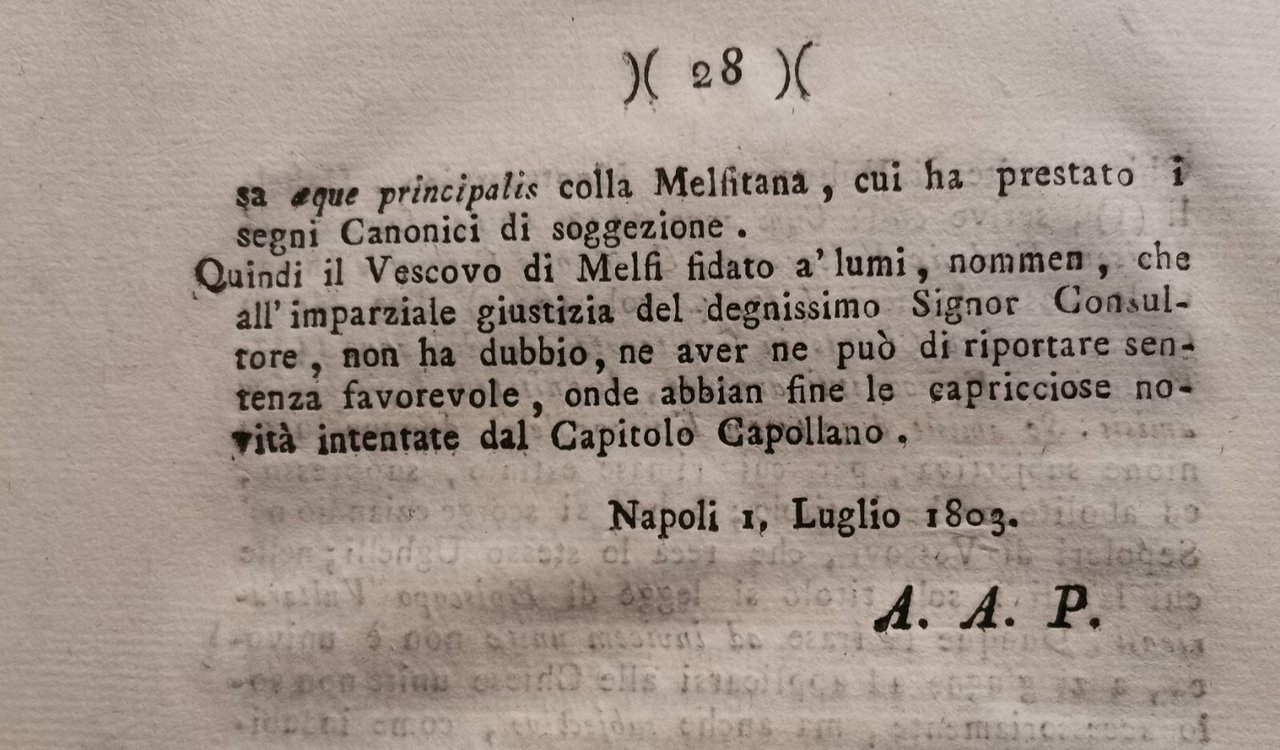 MEMORIA PER LO VESCOVO DI MELFI CONTRO IL CAPITOLO DI RAPOLLA.