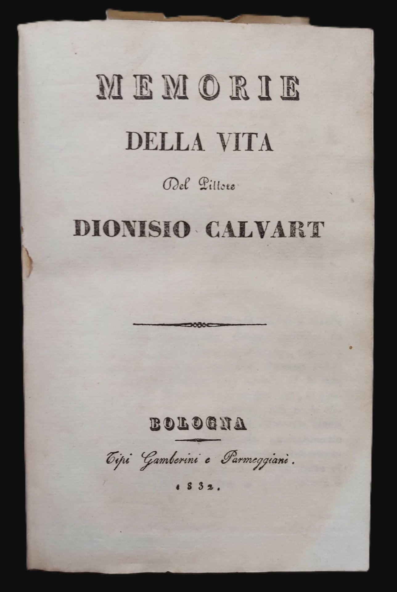 MEMORIE DELLA VITA DEL PITTORE DIONISIO CALVART. Bologna, Gamberini e Parmeggiani, 1832. Unito: Idem. LE VITE DI GIROLAMO CURTI detto il Dentone e di Agostino Mitelli… Bologna, Della Volpe, 1833. Unito: Idem. VITA DEL CELEBRE PITTORE GUIDO RENI scritta dal marchese. Bologna, Della Volpe al Sassi, 1839. Unito: Idem. VITA DEL CELEBRE PITTORE DOMENICO ZAMPIERI detto Domenichino. Bologna, Della Volpe al Sassi, 1839. Unito: Idem. VITA DEL CELEBRE PITTORE FRANCESCO ALBANI.Bologna, Della Vople al Sassi, 1837. Unito: Idem. VITA DI FRANCESCO BARBIERI detto il Guercino. Bologna, Della VoLpe al Sassi, 1839. Unito: Idem. LE VITE DI LODOVICO AGOSTINO, ANNIBALE ED ALTRI DEI CARRACCI.