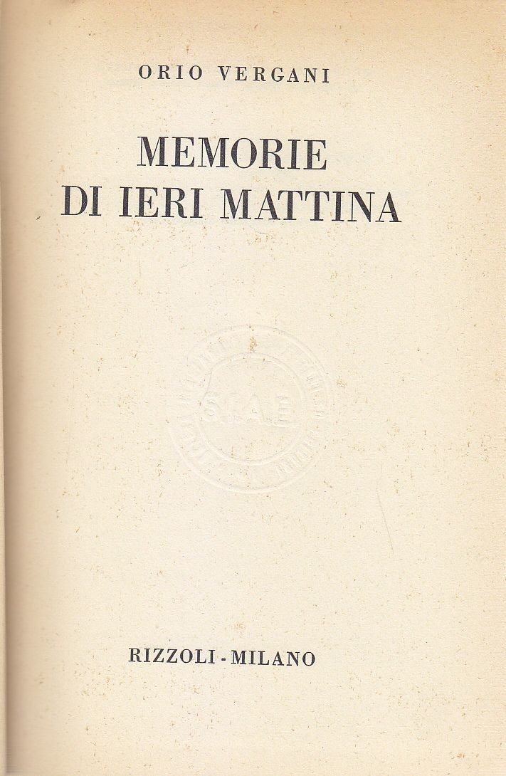 MEMORIE DI IERI MATTINA di Orio Vergani