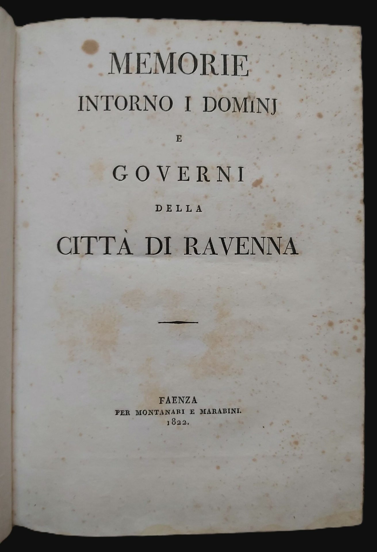 MEMORIE INTORNO I DOMINJ e governi della città di Ravenna.