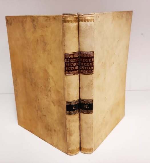 2 volumi in 16, pp. 230, 213, legatura in pergamena con tasselli, fregi e scritte in oro sul dorso. Taglii gialli. Piccoli taglietti al piatto anteriore del 1° volume; alcune pagine con bruniture da inchiostro. Buono (Good) .