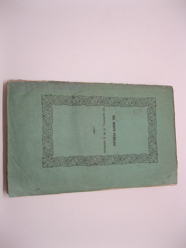 In 8, pp. (6) + XX + 324 + (2) con 5 tavv. (su 4), 2 acquerell. Br. ed. con qualche danno al d. e stzzonature. Edizione originale di questa documentata storia di una delle piu' antiche istituzioni bancarie italiane. Le tavv. raff. il palazzo di S. Giorgio in Genova. Bibl. Einaudi 1399; Kress, 6269.