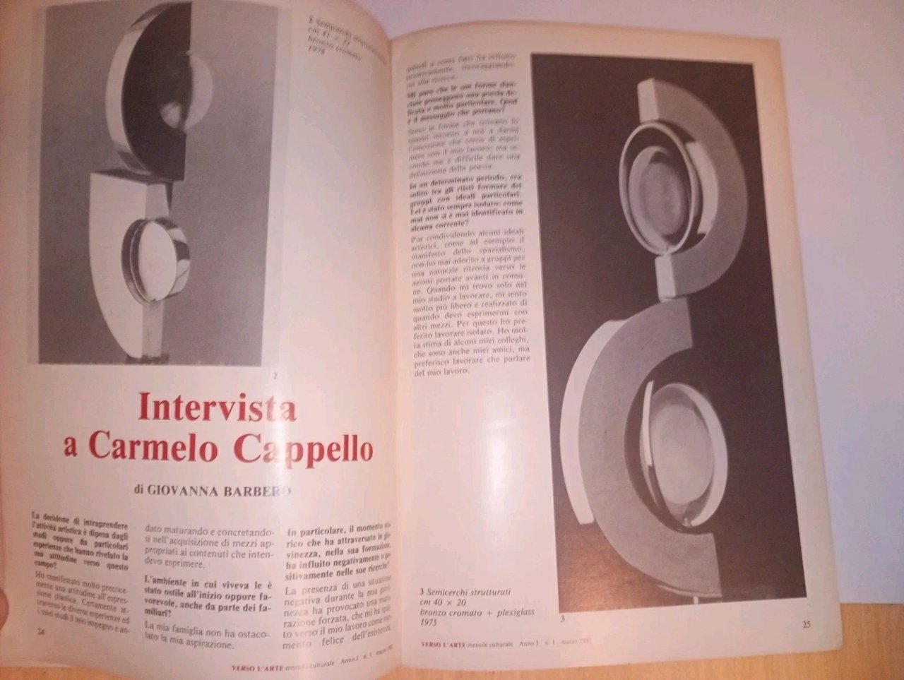 mensile culturale VERSO L'ARTE - anno 1 n. 1 marzo 1982