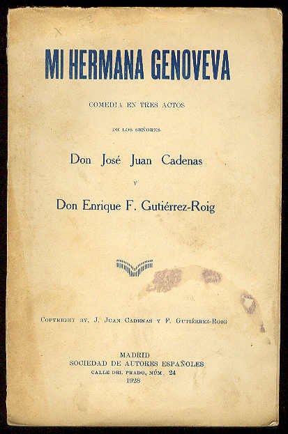 Mi hermana Genoveva. (Comedia en tres actos de BERR Y VERNEUIL. Versión castellana de. Estrenada en el Teatro de la Reina Victoria, de Madrid, el día 26 de Octubre de 1928) | Livres anciens et modernes | Cadenas, José Juan Y Enrique F. Gutierrez-Roig