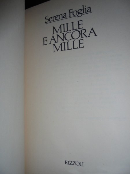 Serena, Foglia. Milano, Rizzoli Editore, 1988. Mille e ancora Mille. In-8°, tela edit. 264, (1) pp. con 24 tavole f.t. E' presente nella prima bianca la firma di ex proprietà. Libro in ottimo stato di conservazione. Neg. mob. 8