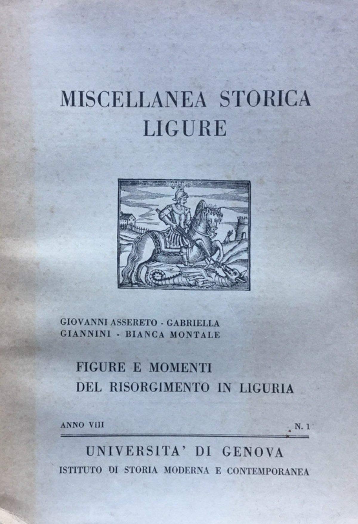 Anno VIII 1976 n. 1. università di Genova, Istituto di storia moderna e contemporanea. Contiene G. Assereto, Genova e la Liguria nell'anno 1800. Vrisi bellica e trasformazioni politiche. G. Giannini, Aspetti della vita savonese prima dell'unità. B. Montale, Filippo Antonio Gualterio prefetto di Genova. 945 - Ba In Ottavi (15-23cm ) Buono (Good) Buono