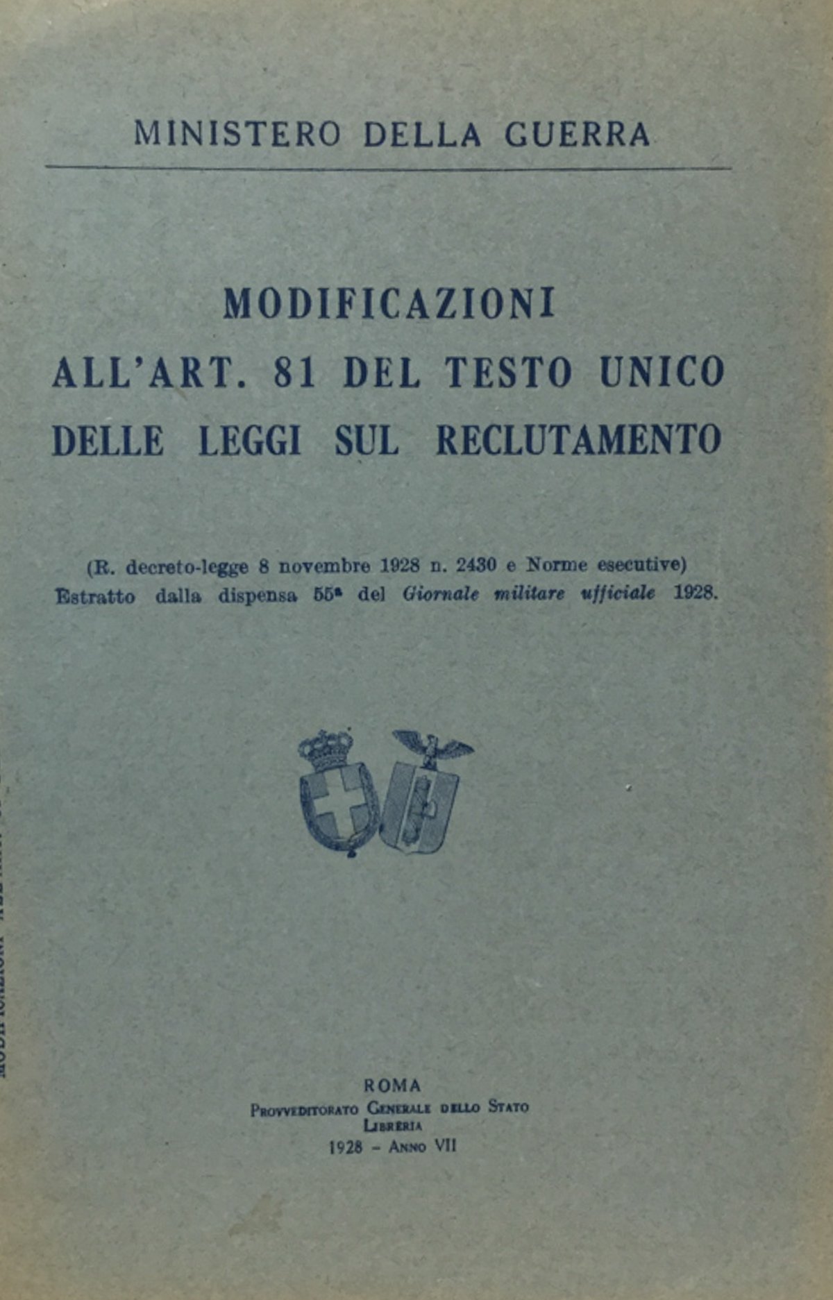 Modificazioni dell'art. 81 del Testo Unico delle leggi sul reclutamento 1928