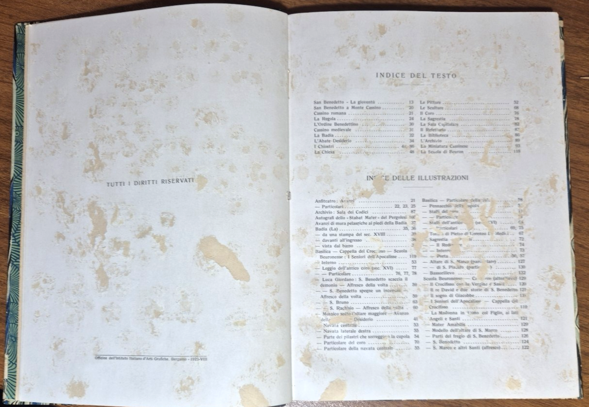 Stato di conservazione: molto buono (fioriture, spellatura ai margini di poche pagine e più consistenti con piccola perdita di testo all'indice).
