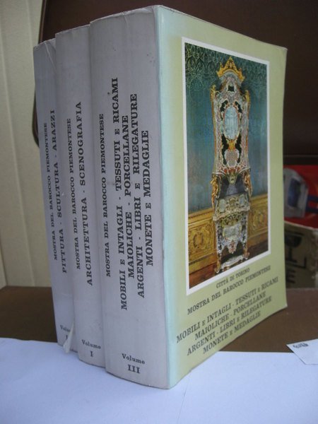 Mostra del barocco piemontese a Palazzo Madama, Palazzo Reale e Palazzzina Stupinigi; vol. 1-3 architettura scenografia, pittura scultura arazzi, mobili e intagli - tessuti e ricami - maioliche e porcellane - argenti - libri e rilegature - monete e medaglie.