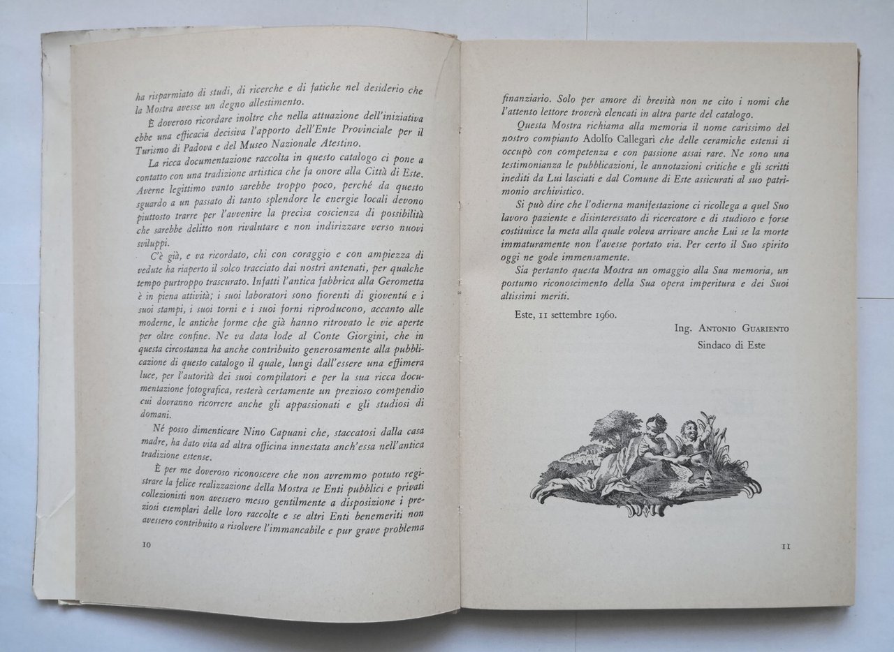 MOSTRA DELL'ANTICA CERAMICA DI ESTE catalogo a cura di Gino Barioli 1960 Libro