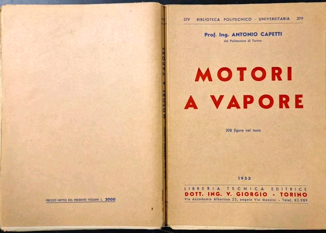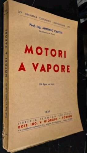 MOTORI A VAPORE di Antonio Capetti. Libreria Tecnica Editrice Dott. Ing. Giorgio - Torino, 1953. 367 pagine, 208 figure nel testo. Copertina editoriale in brossura. Stato di conservazione: molto buono (pagine normalmente ingiallite, sottolineature e chiose a matita leggera) Libro usato saggistica ingegneria