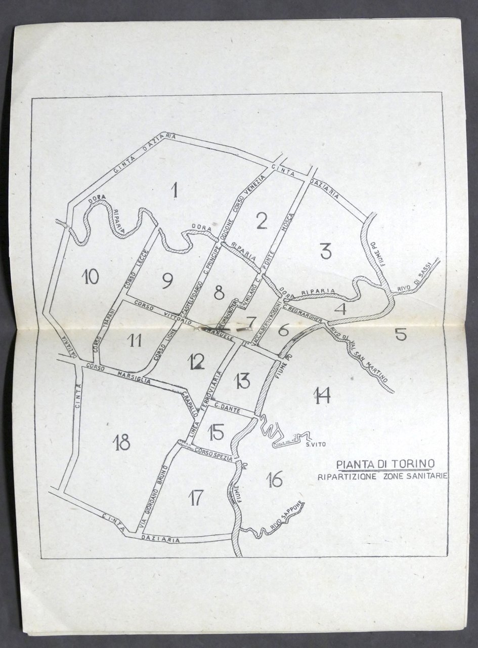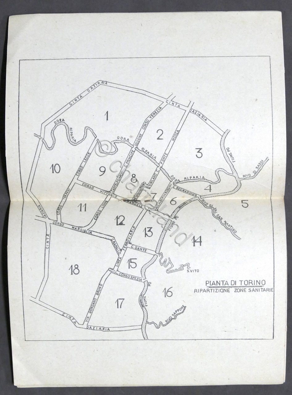 Mutua Operai Fiat Torino - Regolamento e Norme per Servizi di Assistenza - Giugno 1924 Pag. 23, con una pianta di Torino "ripartizione zone sanitarie" Copertina morbida - Testo in italiano. Condizioni molto buone. Copertina come da foto.
