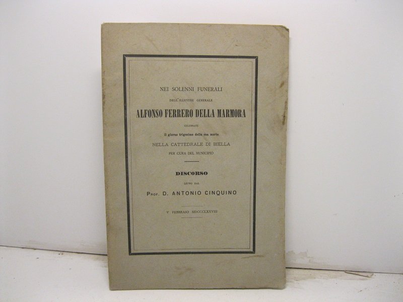 Nei solenni funerali dell'illustre generale Alfonso Ferrero Della Marmora celebrati il giorno trigesimo della sua morte nella cattedrale di Biella per cura del Municipio. Discorso