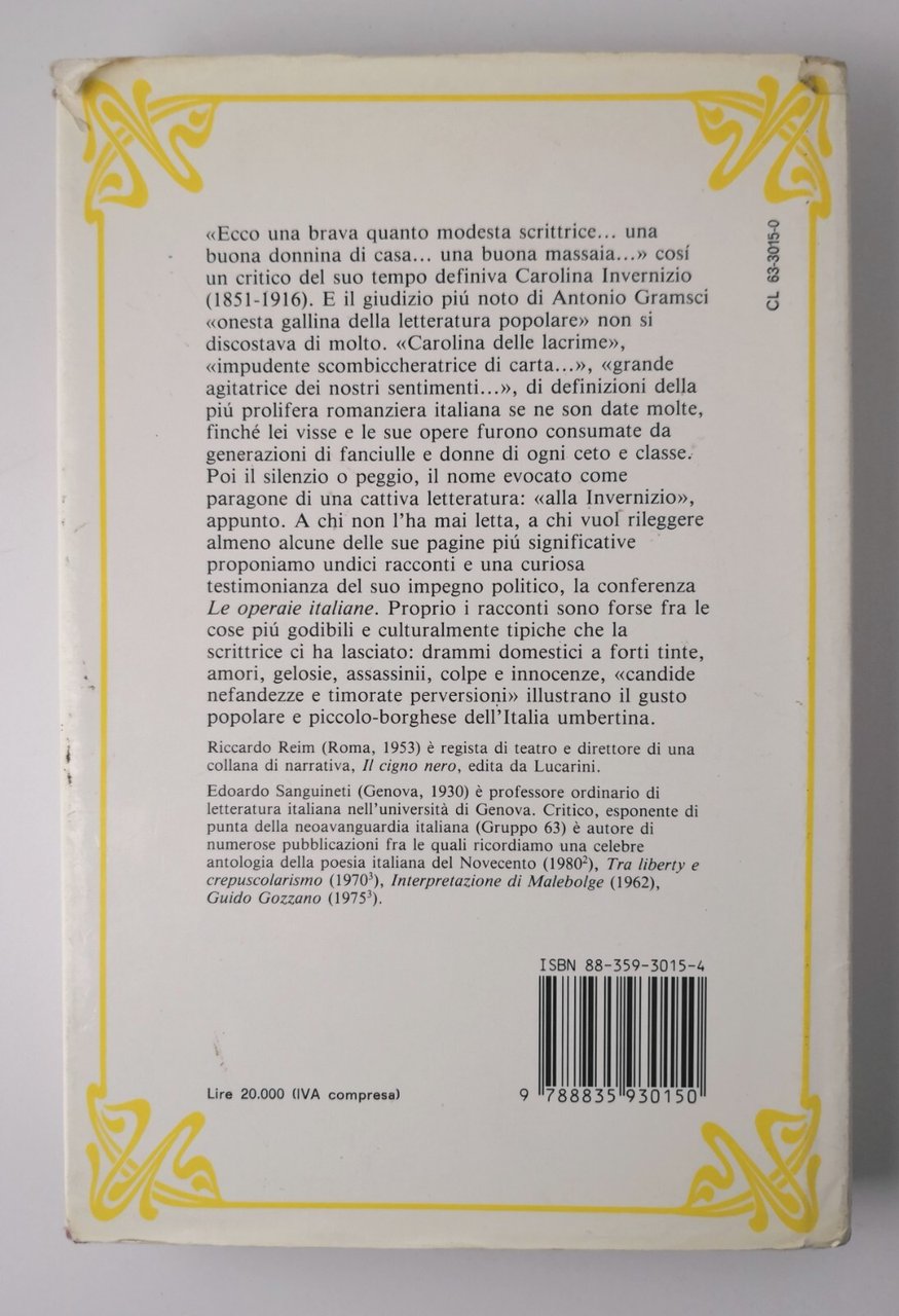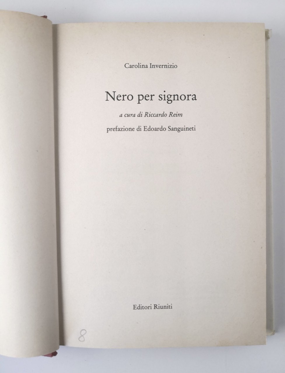 NERO PER SIGNORA di Carolina Invernizio. A cura di Riccardo Reim. Prefazione di Edoardo Sanguineti.