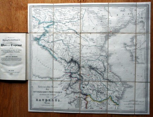 1 Bl., 125 S. Mit einer mehrf. gefalt. grenzkol. gestochenen Karte (sektioniert und auf Leinwand aufgezogen). 8°, blindgepr. Leinwand der Zeit mit eingebundenem OUmschlag und RTitel. ÖBL XIII, 163. - Anton Steinbüchel von Rheinwall (1790-1883) war Direktor des Wiener Münz- und Antikenkabinetts. - Mit einer "Übersichts Karte der russischen Provinzen nördlich und südlich vom Kaukasus" (45 x 49 cm). - Sehr schönes Exemplar, nur zwei kleine Unterstreichungen. - The indicated shipping costs refer to books weighing up to one kilogram. - Bücher, die schwerer als ein Kilogramm oder größer als 35 x 25 cm sind, werden als Paket verschickt und kosten innerhalb Deutschlands bis zu zwei Kilogramm 6 Euro, darüber hinaus 7 Euro Porto. -