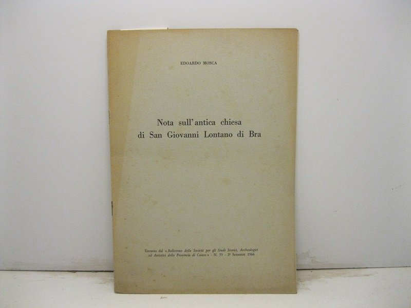 Nota sull'antica Chiesa di San Giovanni Lontano di Bra. Estratto dal Bollettino della Societa' per gli Studi Storici, Archeologici ed Artistici della Provincia di Cuneo. N. 55 - 2o Semestre 1966.