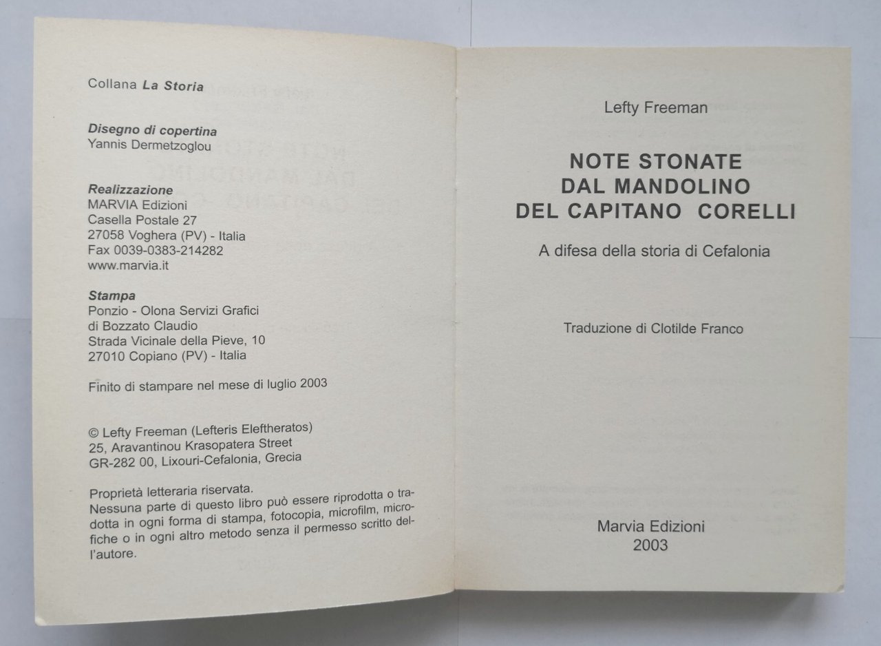 NOTE STONATE DAL MANDOLINO DEL CAPITANO CORELLI di Lefty Freeman. A difesa della storia di Cefalonia.