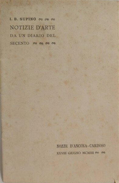 NOTIZIE D'ARTE da un diario del Secento. Nozze D'Ancona-Cardoso XXVIII Giugno MCMIIII.