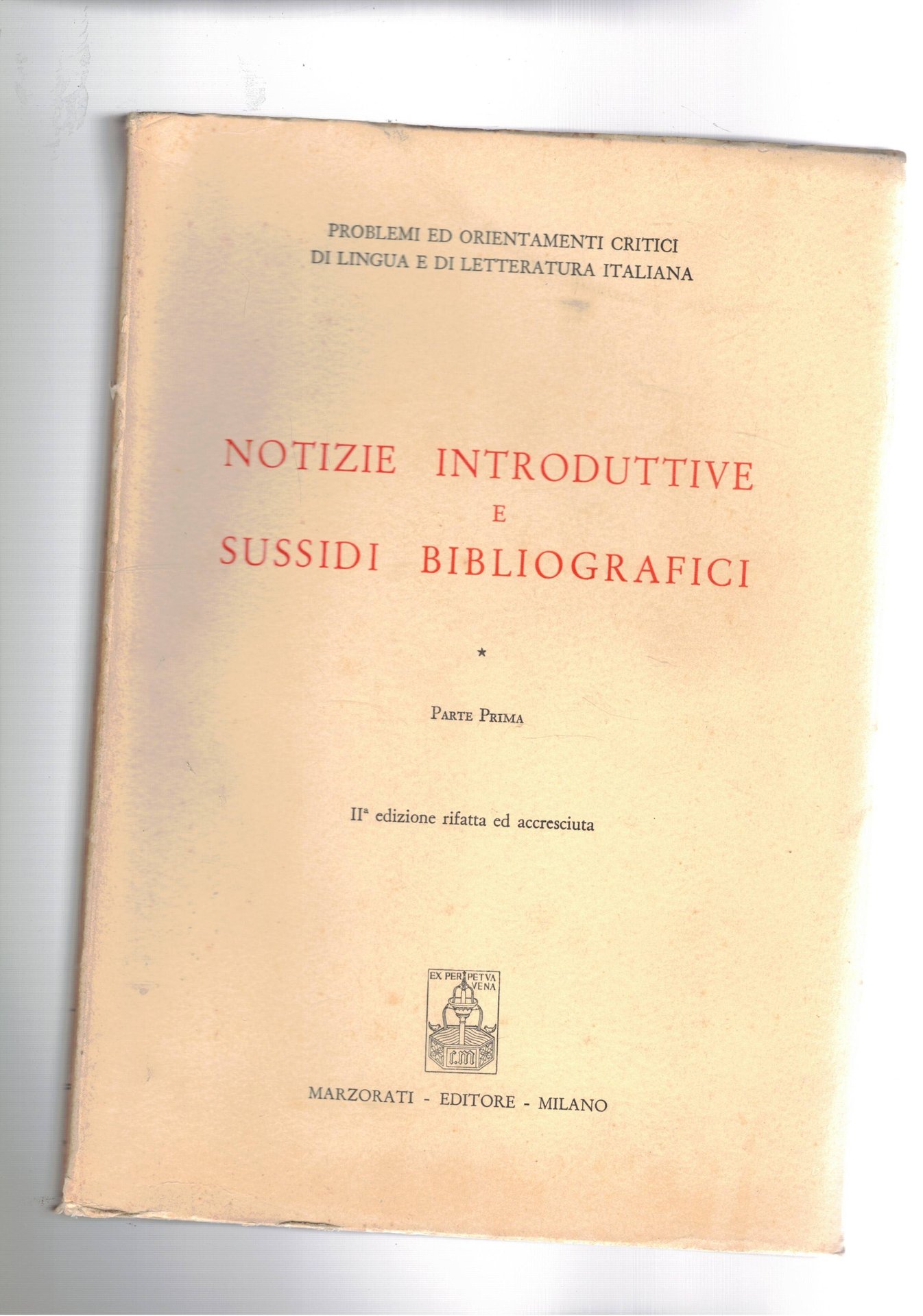 Notizie introduttive e sussidi bibliografici. I° le raccolte di rime e le collezioni di classici; II° giornali e riviste; III° bibliografia particolar della letteratura italiana. Seconda edizione.