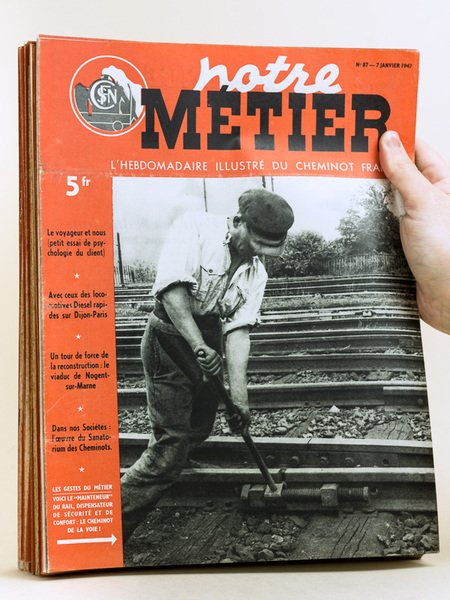 45 vol. in-4 br., Notre Métier. Hebdomadaire d'information professionnelle et sociale des cheminots de France, 1947 Bon ensemble bien complet des 45 numéros de l'année 1947