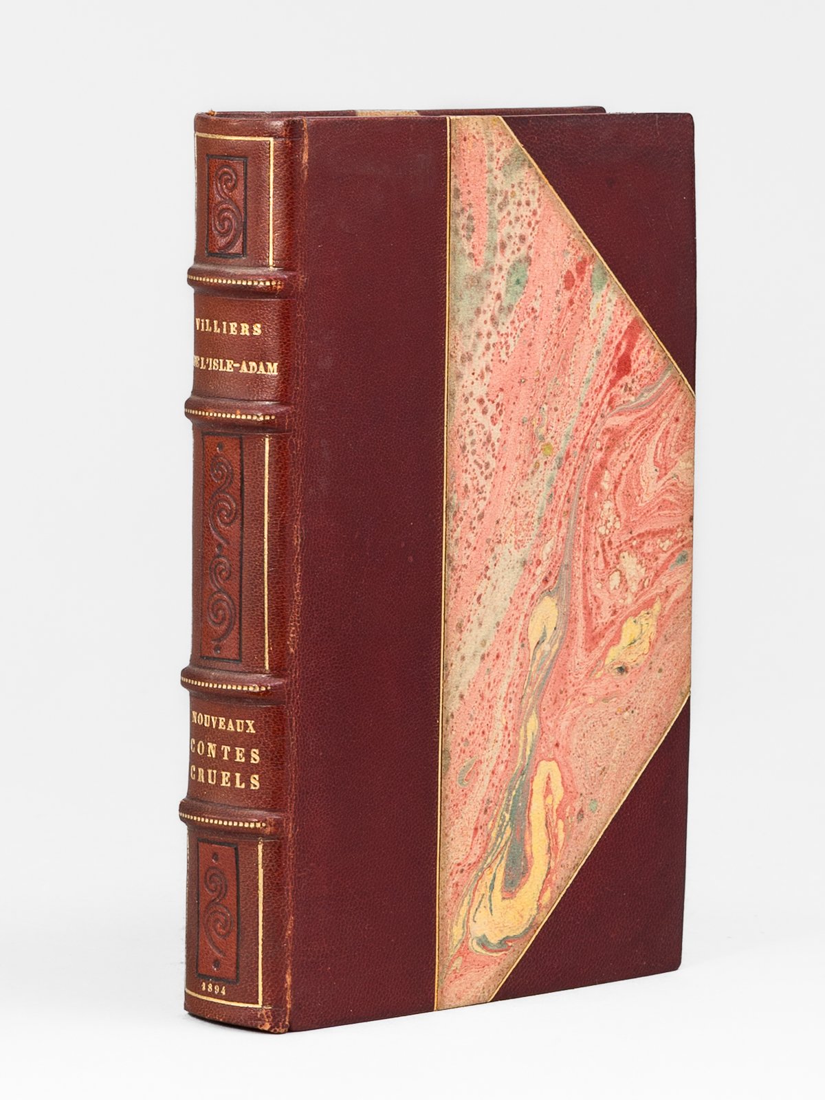 1 vol. in-8 reliure demi-basane à coins lie-de-vin, dos à 4 nerfs orné et estampé à froid, tête dorée, couvertures et dos conservés, reliure signée de Mériot Frères relieurs à Rochefort, Calmann Lévy, Éditeur, Ancienne Maison Michel Lévy Frères, Paris, 1893, 4 ff., 280 pp. Edition en partie originale. L'ouvrage contient les Nouveaux Contes cruels ainsi que les dernières pages écrites par le poète, jusqu'alors inédites en volumes : l'Élu des Rêves, Maître Pied, l'Amour sublime, le Meilleur Amour, les Filles de Milton, ainsi que la première lettre d'un roman épistolaire inachevé de Villiers de l'isle-adam et Judith Gautier. Bon état pour cet exemplaire bien relié.