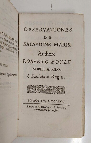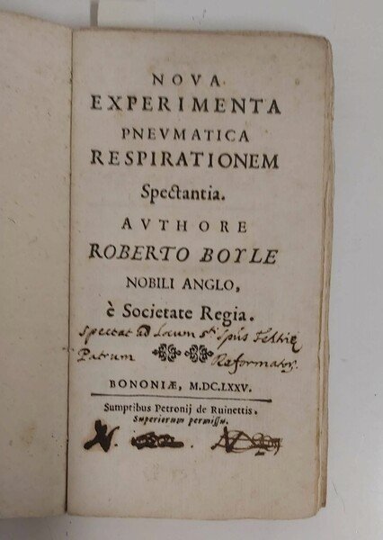 NOVA EXPERIMENTA PNEUMATICA RESPIRATIONEM SPECTANTIA. Bologna, P. de Ruinettis, 1675. Unito: Idem. OBSERVATIONES DE SALSEDINE MARIS.