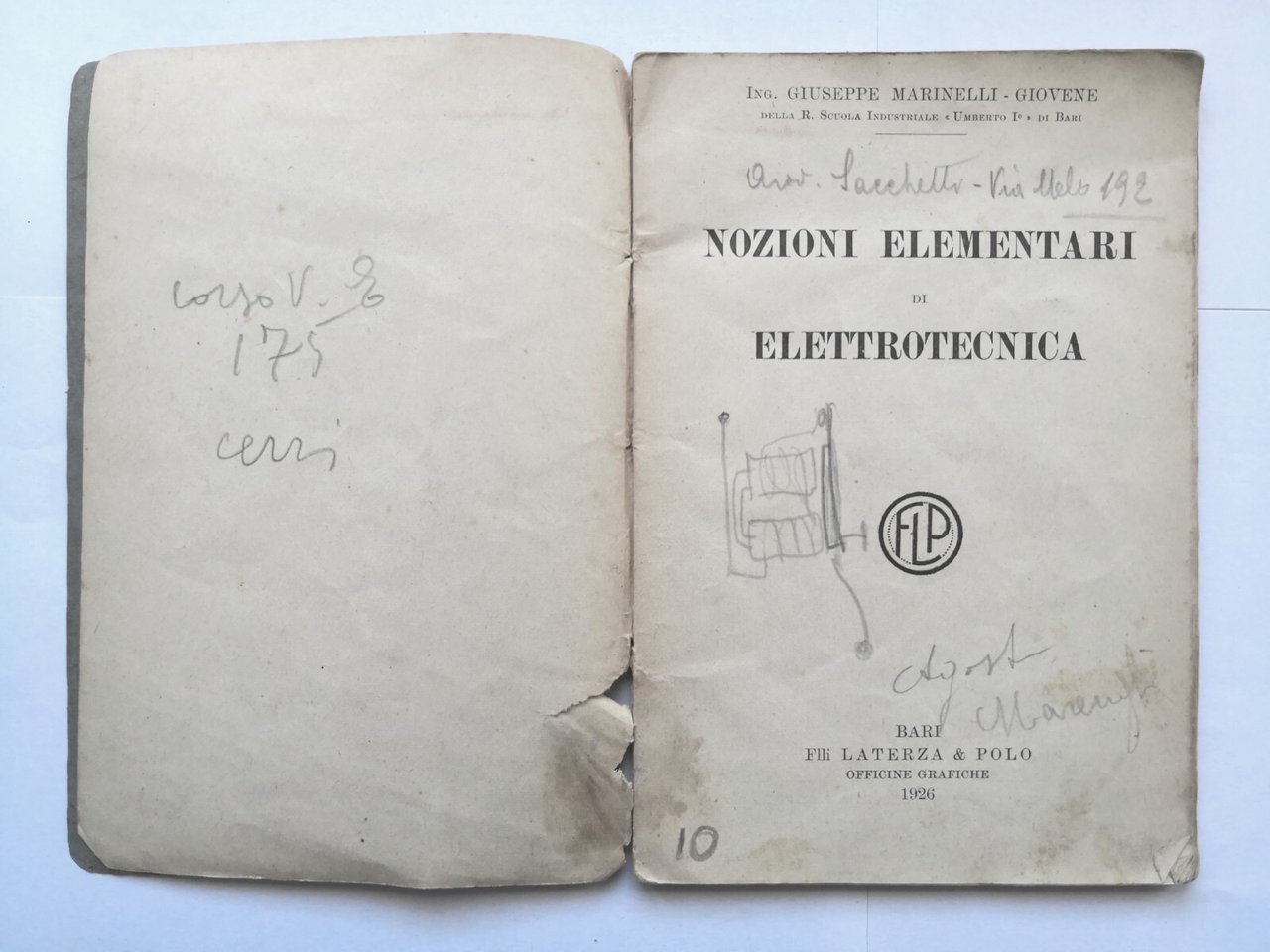 NOZIONI ELEMENTARI DI ELETTROTECNICA Giuseppe Marinelli Giovene 1926 libro