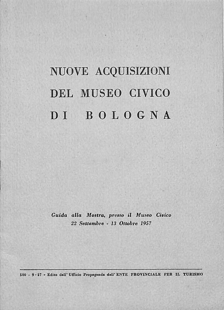 Nuove acquisizioni del Museo civico di Bologna : guida alla Mostra presso il Museo civico : 22 settembre-13 Ottobre 1957