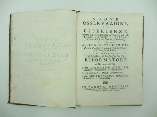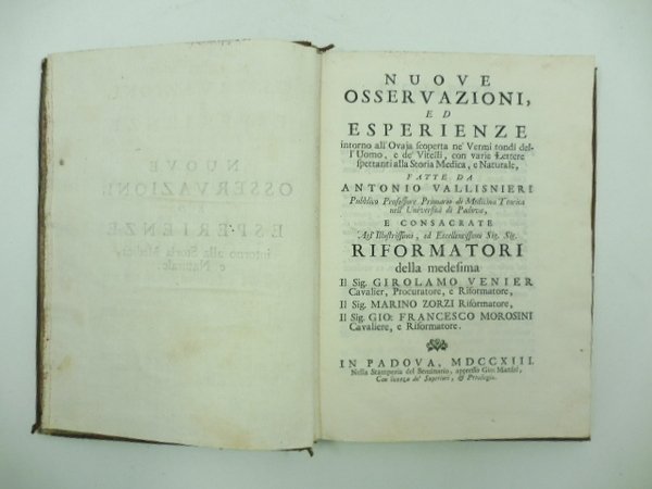 Nuove osservazioni ed esperienze intorno all'ovaja scoperta ne' vermi tondi dell'uomo e de vitelli con varie lettee spettanti alla storia medica e naturale fatte da Antonio Vallisnieri