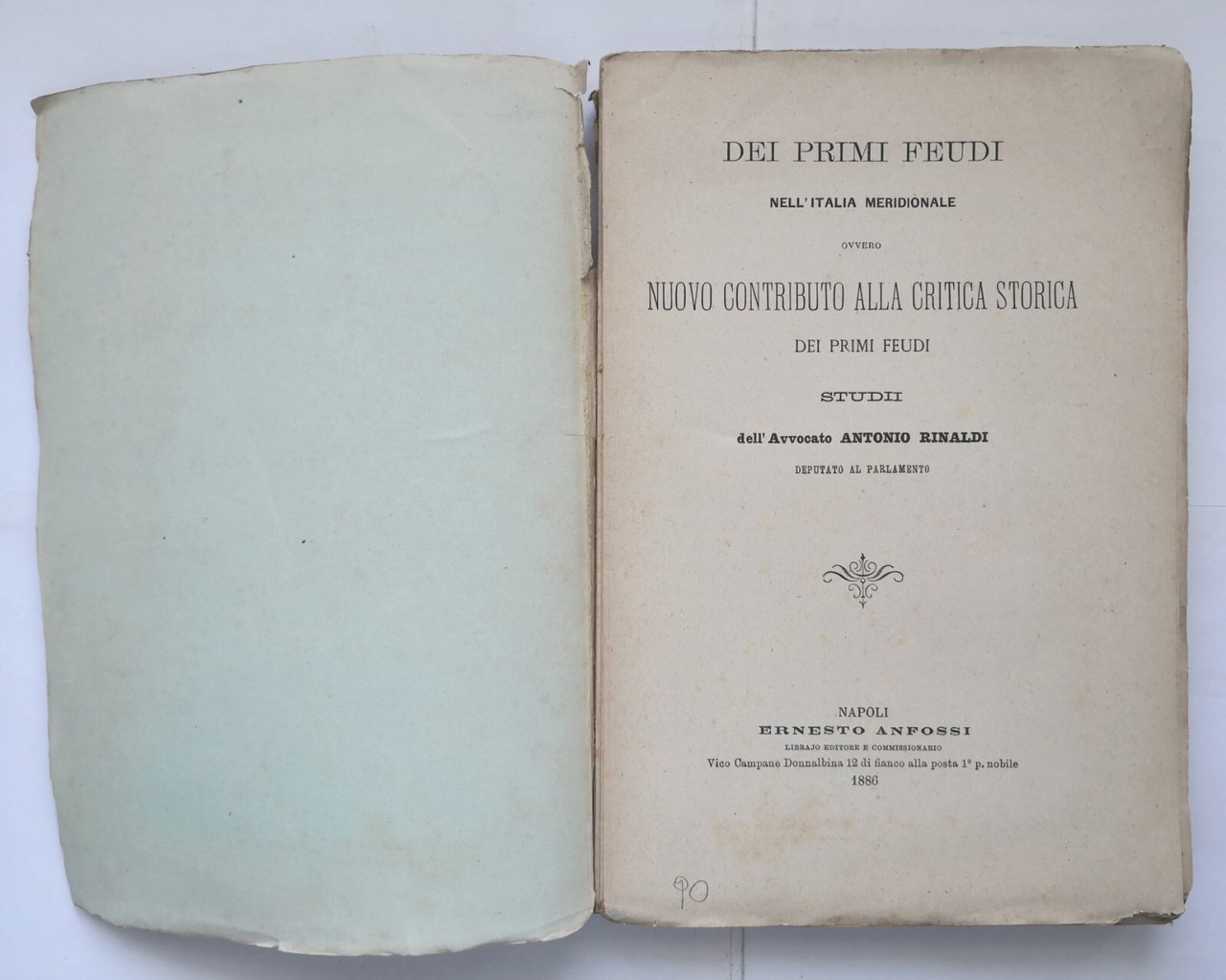 DEI PRIMI FEUDI NELL'ITALIA MERIDIONALE OVVERO NUOVO CONTRIBUTO ALLA CRITICA STORICA DEI PRIMI FEUDI di Antonio Rinaldi.