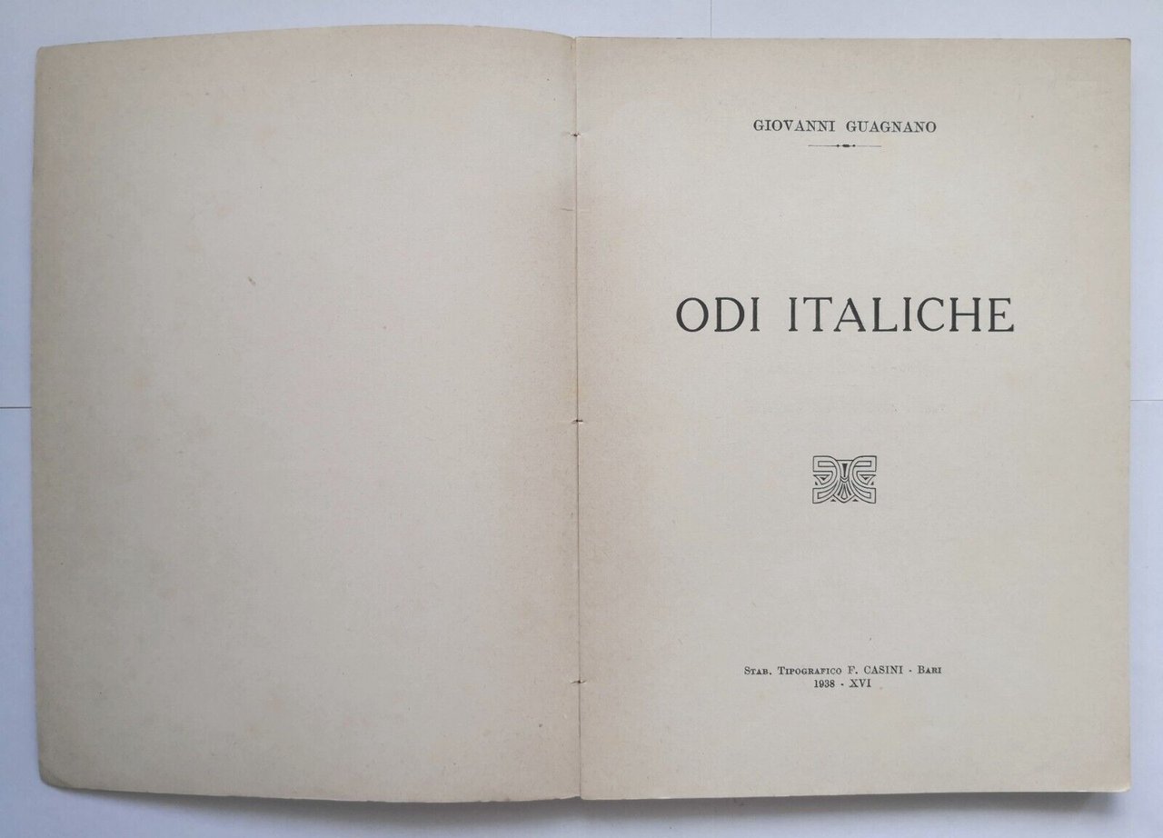 ODI ITALICHE di Giovanni Guagnano 1938 Casini Libro poesia storia locale Bari